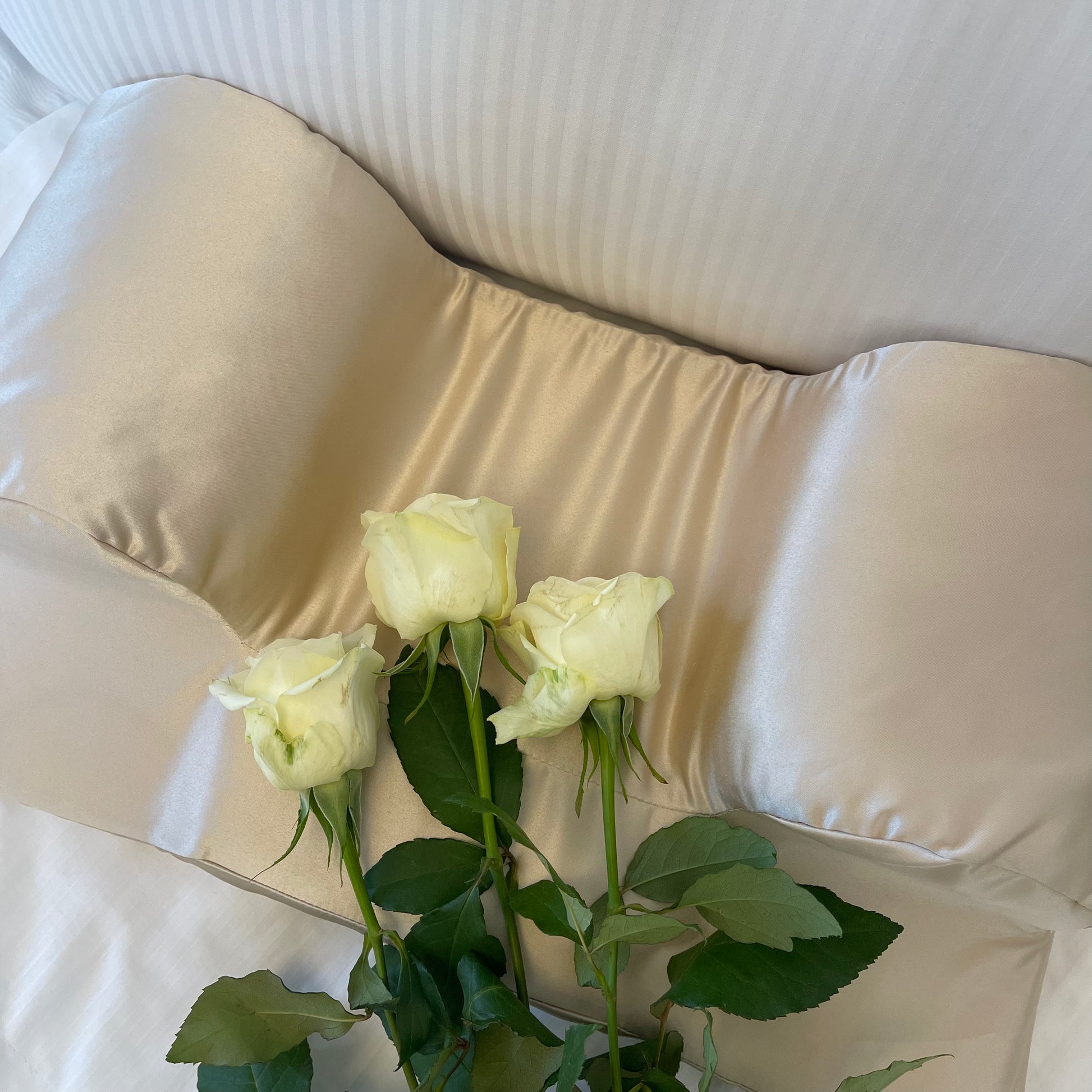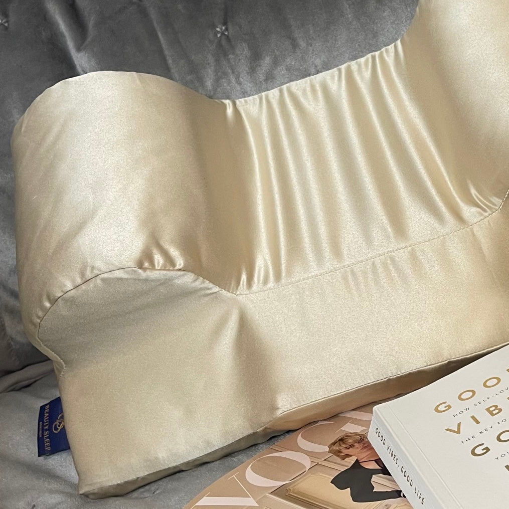 The Beauty Sleep Back Sleeper™️ is a premium pillow designed to gently retrain and support you to sleep on your back. It offers a wide range of beauty and wellness benefits- from reducing sleep lines and supporting facial structure to improving posture and spinal alignment.