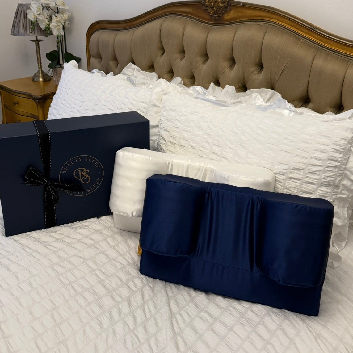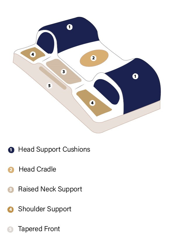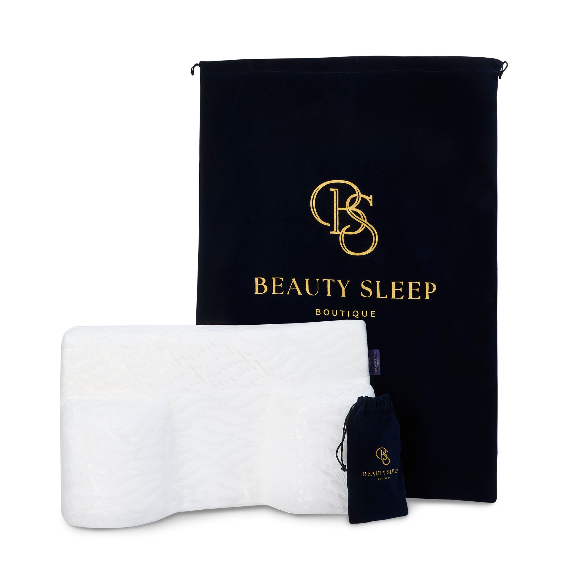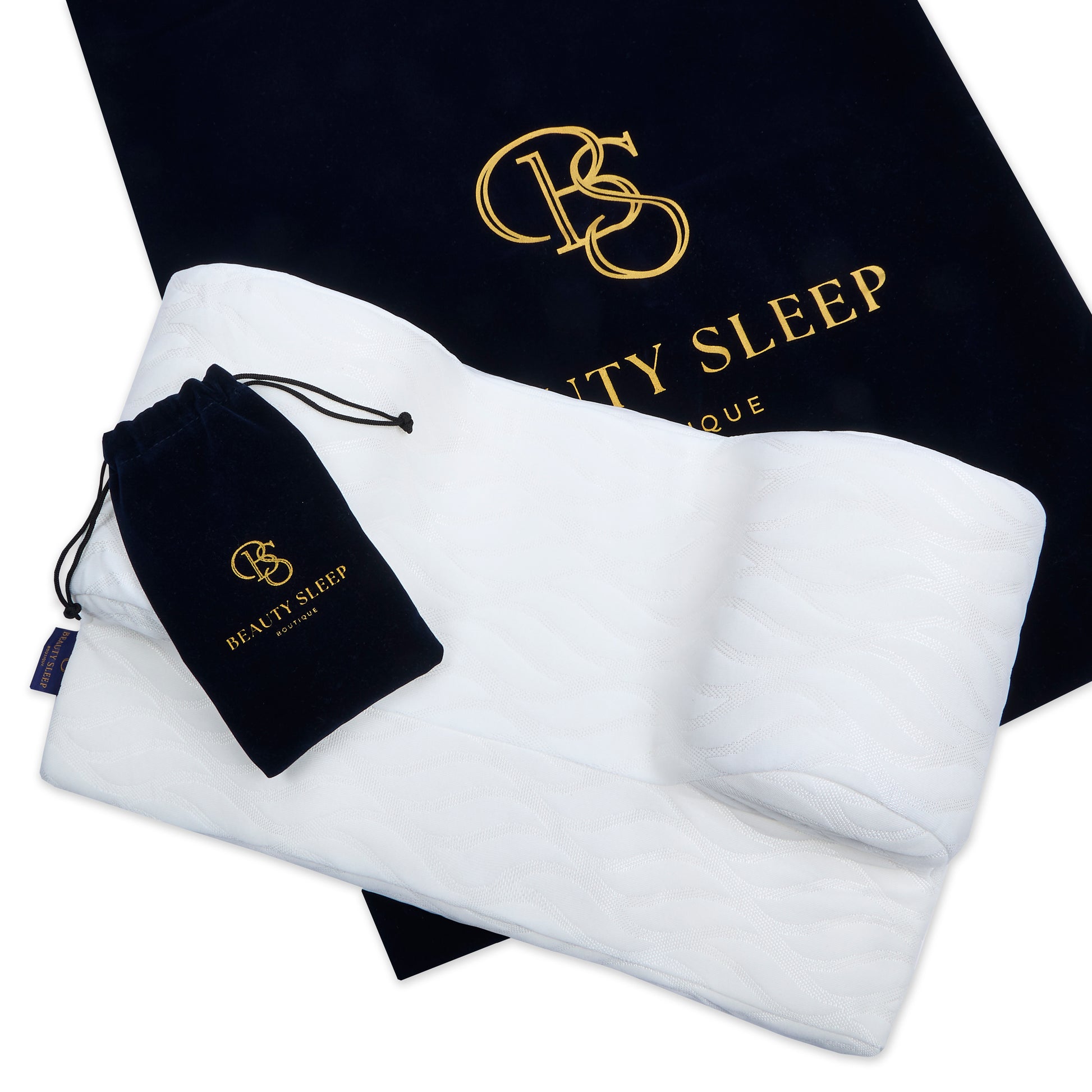 The Beauty Sleep Back Sleeper™️ is a premium pillow designed to gently retrain and support you to sleep on your back. It offers a wide range of beauty and wellness benefits- from reducing sleep lines and supporting facial structure to improving posture and spinal alignment.