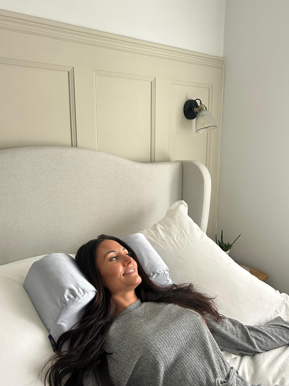 The Beauty Sleep Back Sleeper™️ is a premium pillow designed to gently retrain and support you to sleep on your back. It offers a wide range of beauty and wellness benefits- from reducing sleep lines and supporting facial structure to improving posture and spinal alignment.